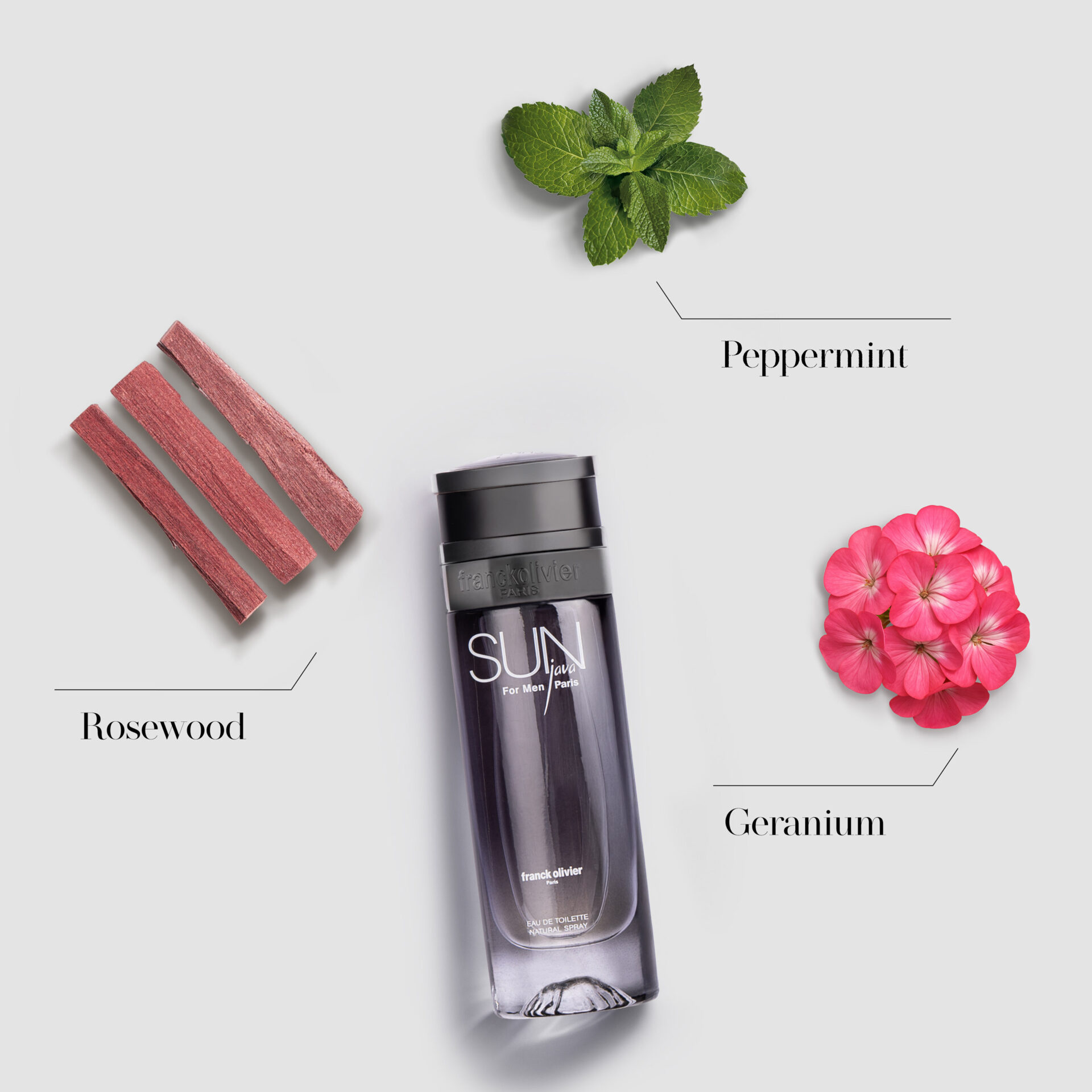 The bottle is adorned with the color of the sky in the early morning: the still fresh and invigorating hours of a day that is beginning. A perfume with character… Sun Java For Men is a refreshing and elegant Eau de Toilette. At the top, the tangy freshness of citrus blends with the liveliness of peppermint, evoking a solar energy. The heart reveals notes of melon and geranium, adding a refined fruity and floral touch. In the base, rosewood, musk, amber, and vanilla create a warm and sensual trail, leaving an unforgettable impression.